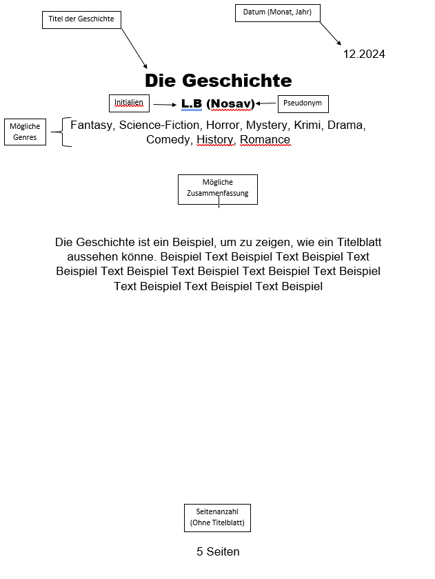 4. (Nicht notwendig) Werke sollten einen Titel haben. Falls diese ohne Titel eingereicht werden, wird ihnen, unter Beachtung des Inhaltes, ein angemessener Titel zugewiesen.